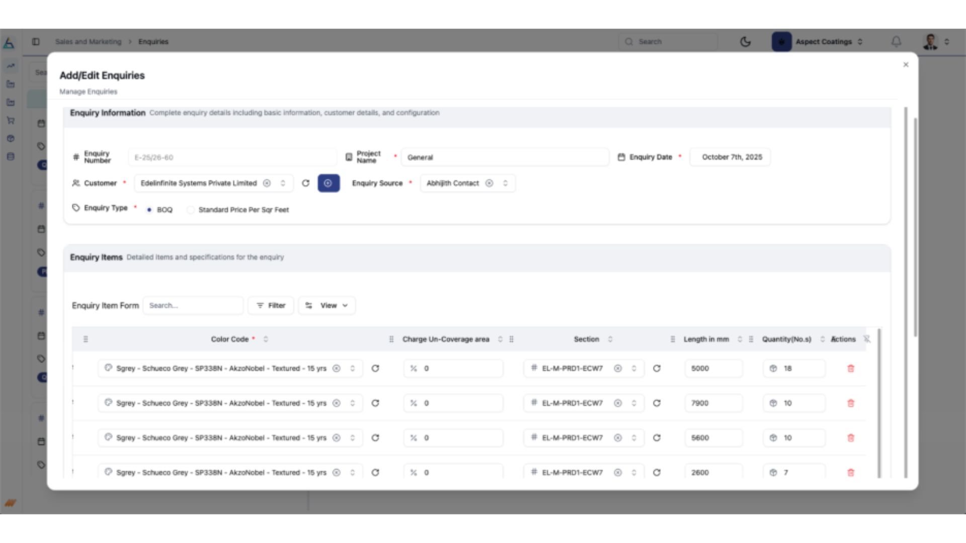 The Creviz team spent time studying every detail of Aspect Coatings' processes - from customer enquiry to dispatch - and built a fully tailored application that automated and digitized their end-to-end operations.