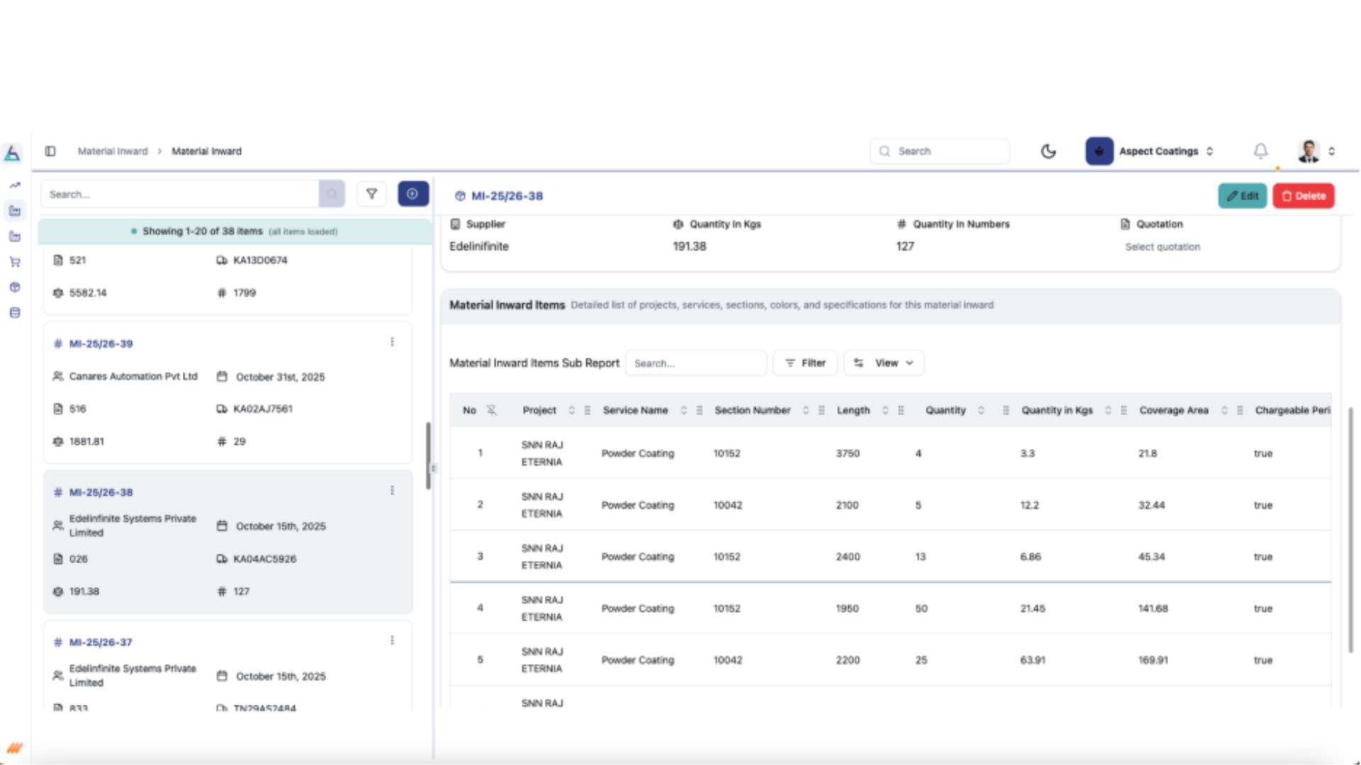 Aspect Coatings explored popular ERP platforms like Zoho and Odoo, but soon realized that off-the-shelf software wasn't designed for the unique workflows of industrial powder coating. The processes involved multiple service types, color combinations, and specialized costing structures - all of which required flexibility that traditional software couldn't provide.