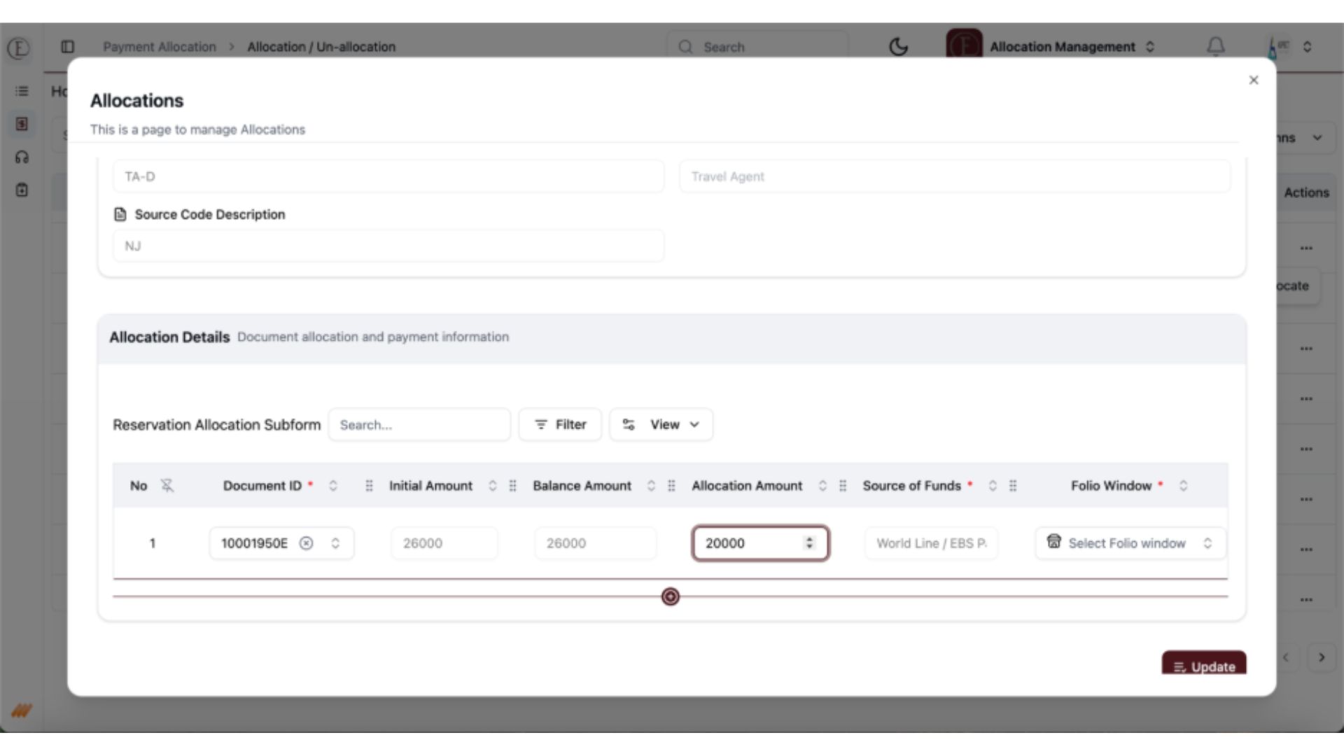 Sales agents can allocate or unallocate payments with smart validation and instant Opera synchronization
